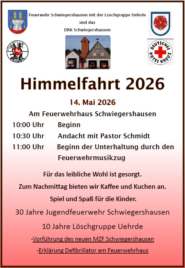 TERMINHINWEIS: Himmelfahrtsfeier rund ums Gerätehaus am 14. Mai 2026 ab 10.00 Uhr!