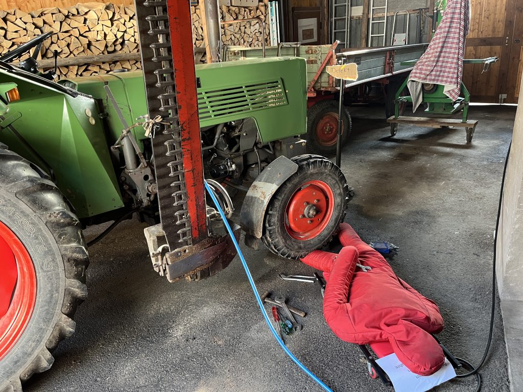 Vor Ort bot sich dann folgende Lage: bei Reparaturarbeiten an einem Oldtimer-Traktor geriet eine Person mit dem linken Bein unter das Vorderrad. Der Wagenheber versagte und die Person wurde eingeklemmt. Sie war bei Bewusstsein und klagte über starke Schmerzen. Die Einsatzkräfte wurden vom Anrufer (GF Wode) eingewiesen, selbiger wurde sofort von einer Einsatzkraft aus dem Geschehen rausgenommen und weiter betreut.