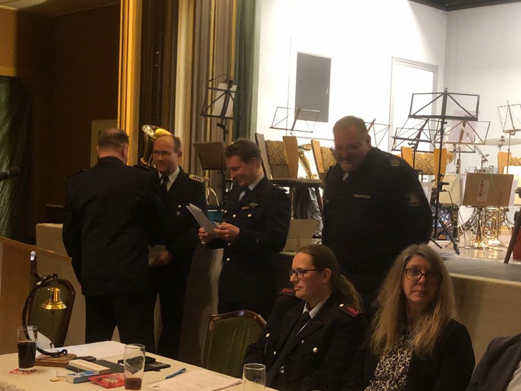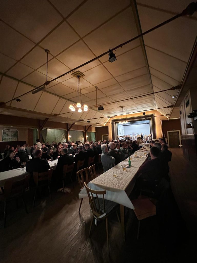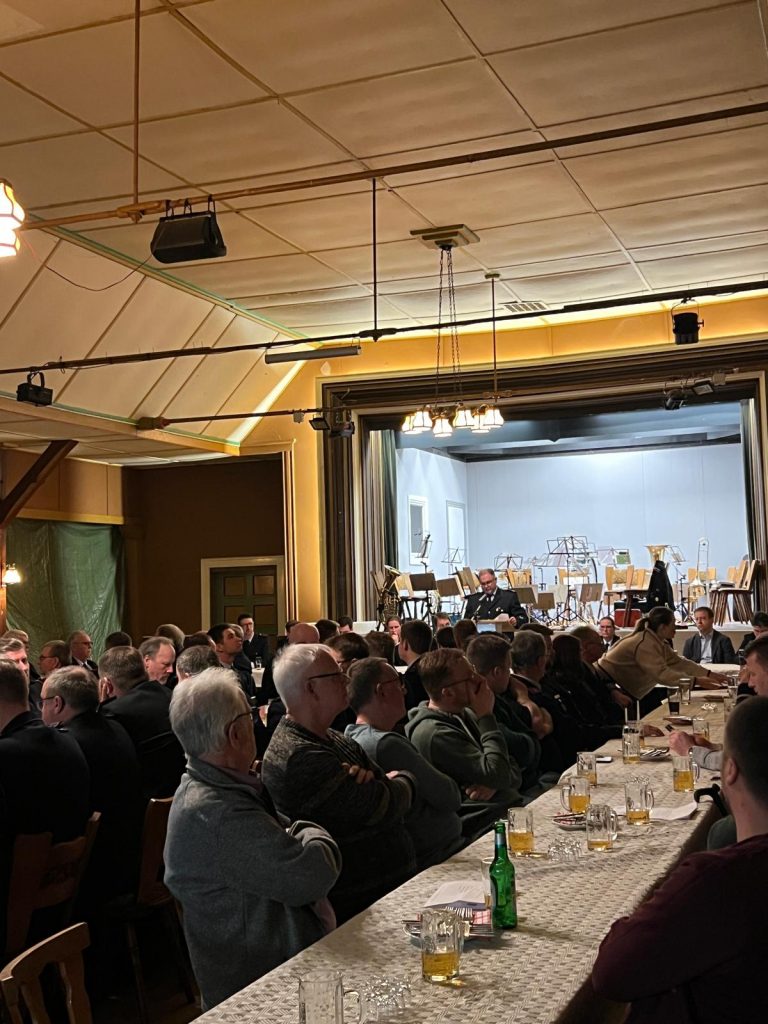 Musikalisch umrahmt wurde die Jahreshauptversammlung vom Feuerwehrmusikzug unter der Leitung von Thomas Jünemann, bis kurz nach Mitternacht sorgten die Musikerinnen und Musiker für den guten Ton. Auch das leibliche Wohl kam nicht zu kurz. Ganz traditionell gab es reichhaltige Stümpelteller und Brot. Aber auch selbstgemachter Kochkäse und „Mops-Fisch“ standen auf den Tischen.
